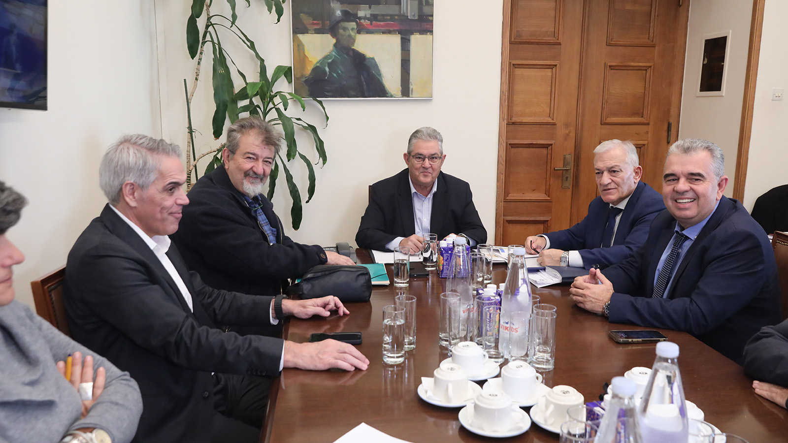 Ο ΓΓ της ΚΕ του ΚΚΕ Δημήτρης Κουτσούμπας συναντήθηκε νωρίτερα σήμερα με αντιπροσωπεία της Εκτελεστικής Επιτροπής της ΚΕΔΕ, στα γραφεία του Κόμματος στη Βουλή. Στη συνάντηση εκ μέρους του ΚΚΕ συμμετείχαν επίσης ο Νίκος Σοφιανός μέλος του ΠΓ της ΚΕ και η Κανέλλα Γεωργοπούλου, υπεύθυνη της Διατμηματικής Επιτροπής της ΚΕ για την τοπική και περιφερειακή διοίκηση.