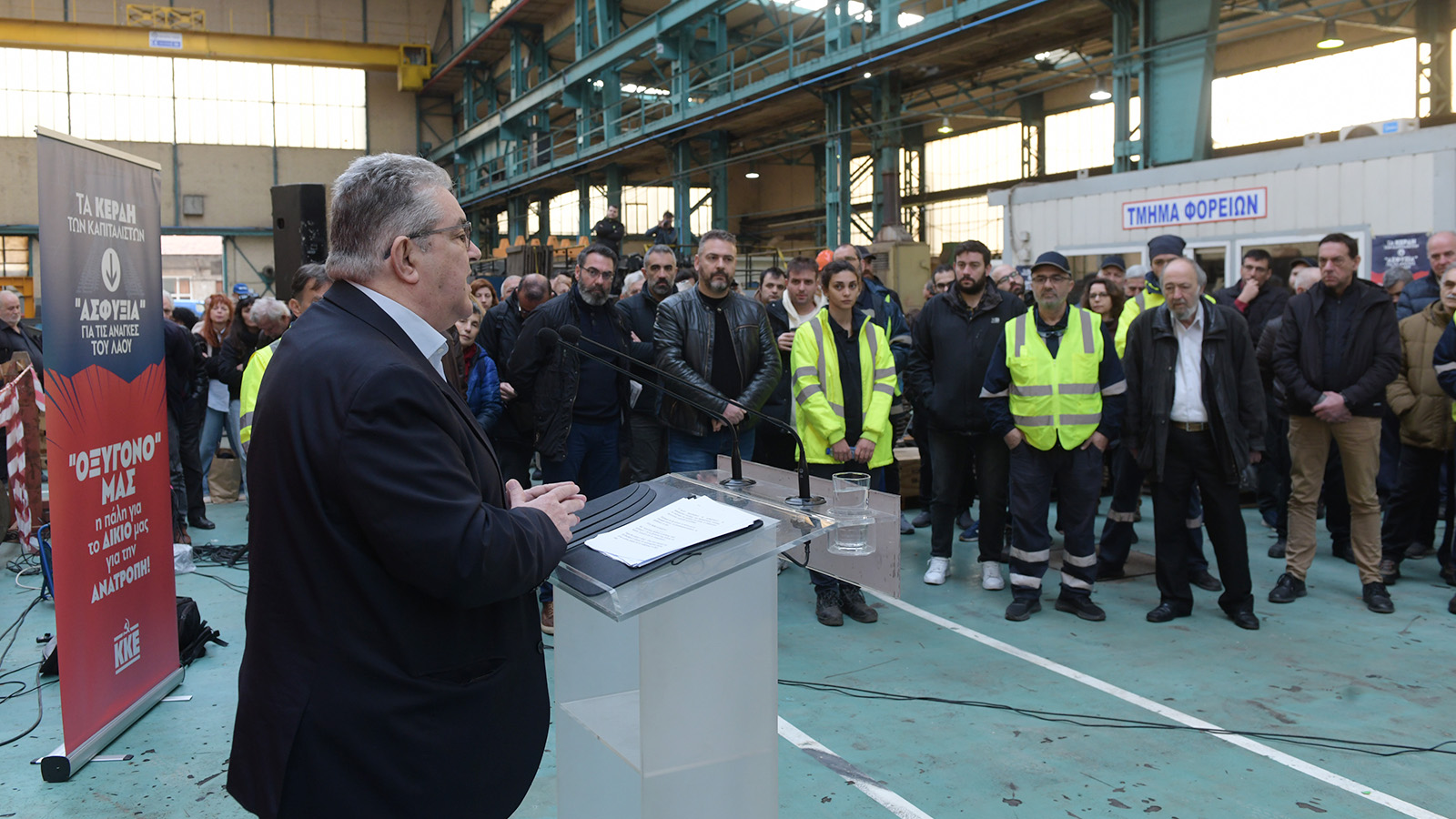 Το εργοστάσιο της Hellenic Train στον Πειραιά επισκέφτηκε σήμερα το πρωί, ο ΓΓ της ΚΕ του ΚΚΕ Δημήτρης Κουτσούμπας ο οποίος μίλησε σε συγκέντρωση εργαζομένων.